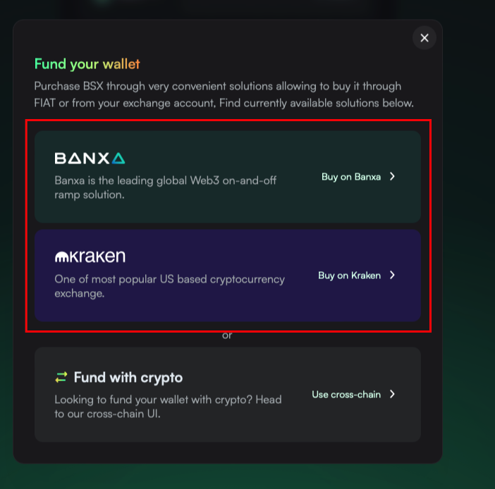 - Buy "KSM" Tokens via BANX using your credit card or via Kraken.