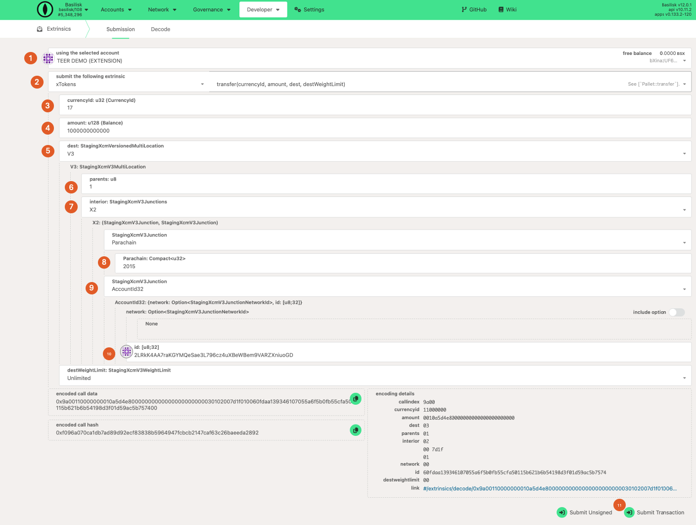 6. Send TEER from Integritee to Basilisk via Polkadot.JS