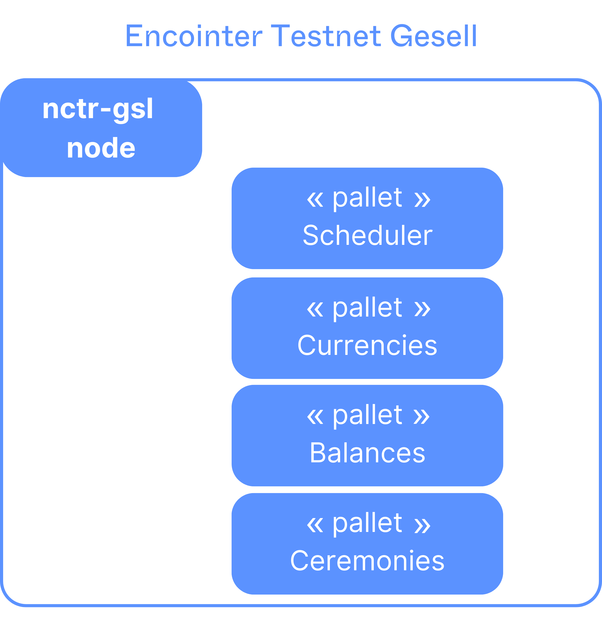 The blockchain we'll be using is based on parity's node-template with one Integritee specific pallet that will take care of the worker registry and will proxy TrustedCalls
